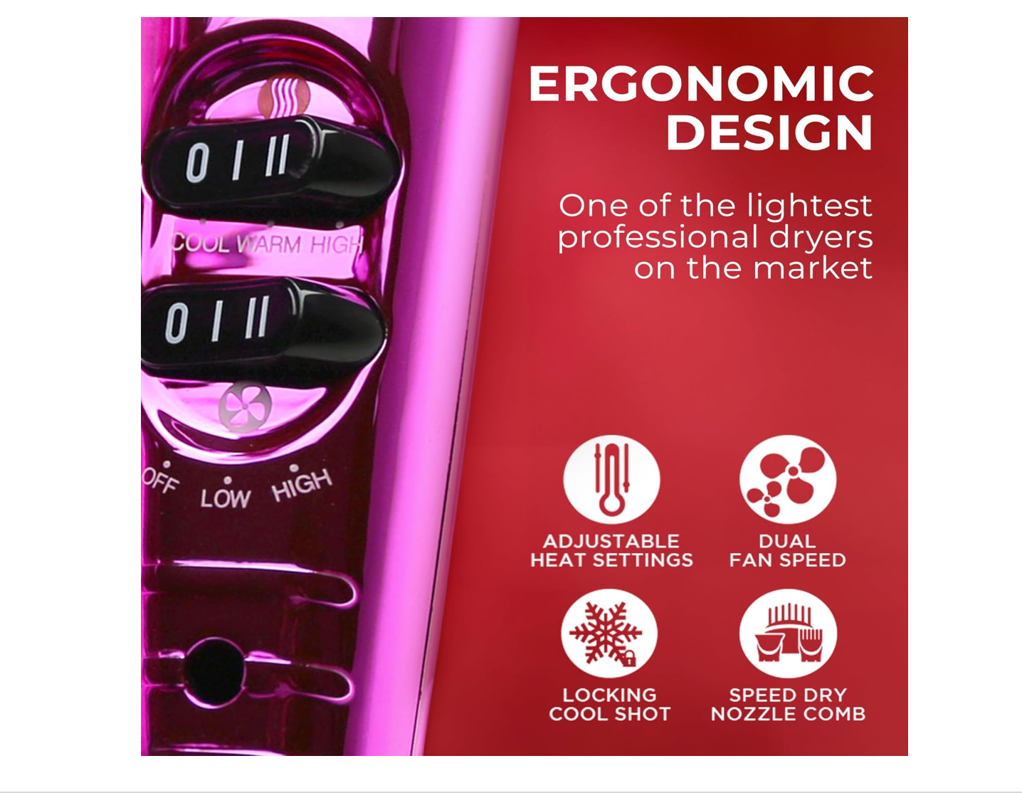 The FHI HEAT Platform Nano Lite Pro 1900 Hair Dryer combines turbocharged power with advanced tourmaline ceramic technology for fast, efficient drying that protects hair from heat damage. Its lightweight design ensures comfortable handling during styling, while the included three-piece attachment set—comb, concentrator, and diffuser—offers versatile styling options for all hair types. Engineered for professional performance, this pink chrome dryer delivers smooth, frizz-free results with precision and care.